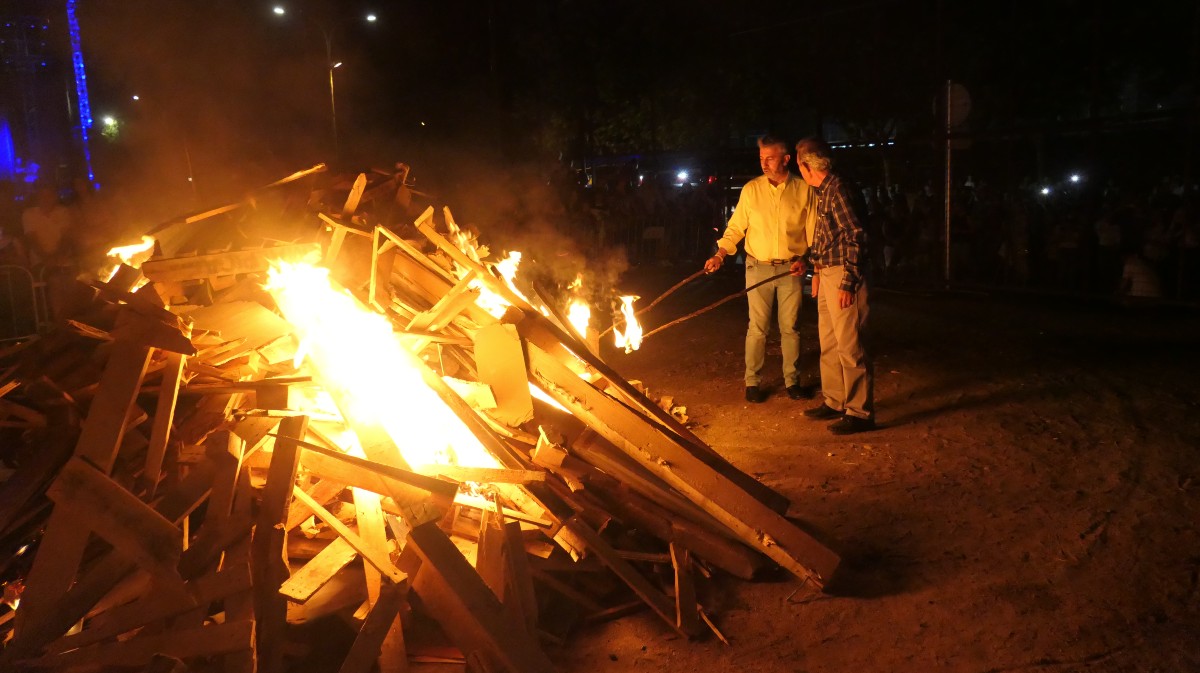 Hoguera ante la parroquia de San Juan a última hora de la tarde del viernes, La festividad que marca el solsticio de verano se ha preparado y deseado con ganas en el barrio de San Juan. Tras la eucaristía en la parroquia de San Juan Bautista, a las 21 horas, se ha procedido al encendido y bendición de la hoguera en la que algunos asistentes han tirado aquellas pertenencias de las que se han querido deshacer para dar paso a lo nuevo o incluso han saltado para pedir deseos.