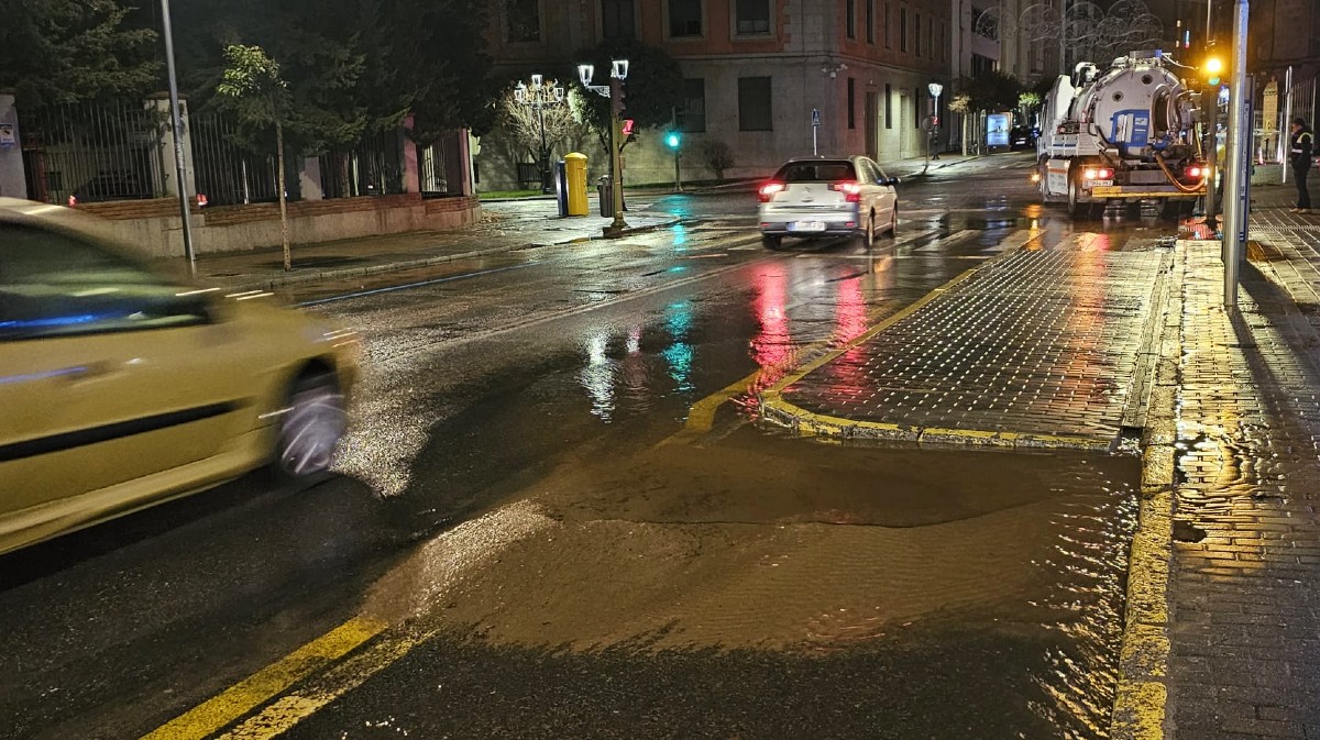 Rotura de una arteria de agua en la plaza de Santa Ana. Una tubería de “una dimensión relevante”, según los técnicos, que supuso la inundación de varias vías y que vecinos de numerosas calles se quedasen sin agua desde la tarde hasta la madrugada.
