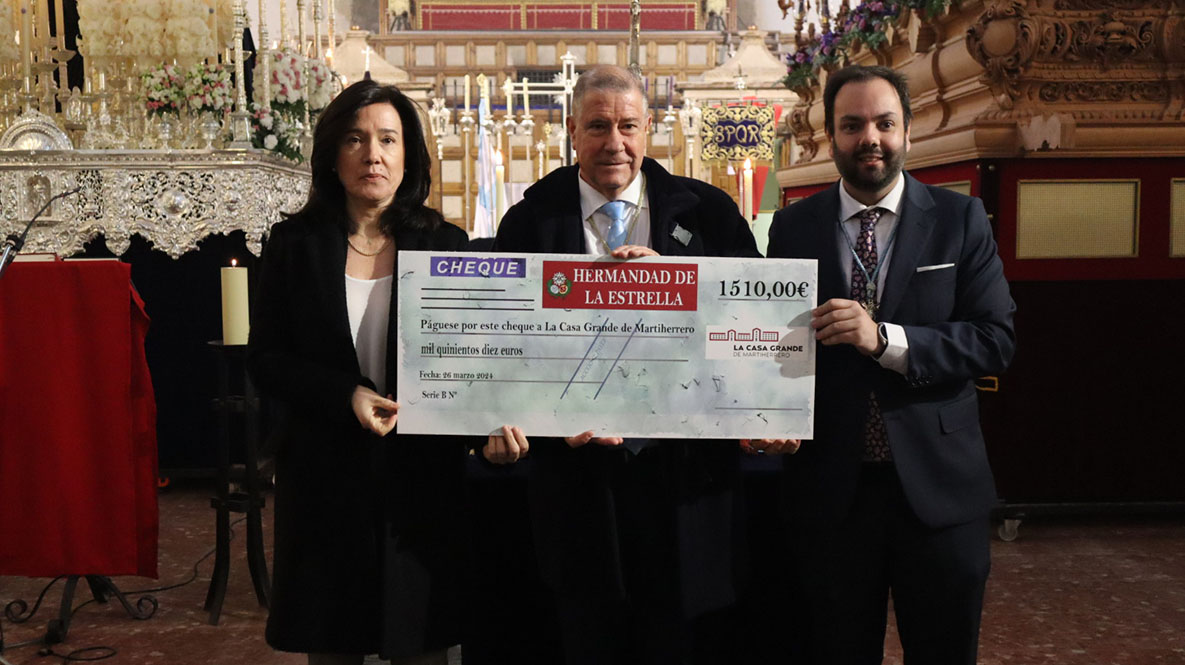 El paso de la Virgen ha mostrado en torno a los respiraderos y alrededor de todo el paso el texto grabado de la ‘Salve’, en una comitiva que también ha estrenado los ocho ciriales que van delante de los dos pasos gracias a una donación de la Peña Jóvenes Salud y Esperanza, y además de seis candeleros de la virgen.