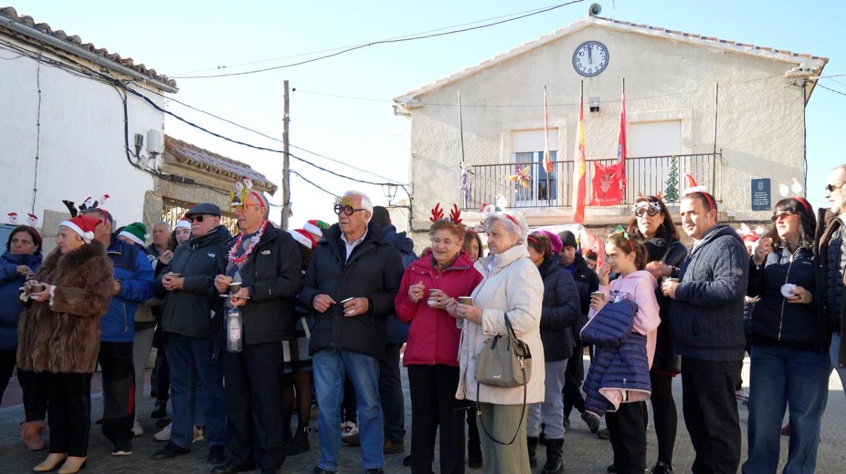 La plaza Palacio, donde se ubica el Ayuntamiento, ha comenzado a llenarse de familias y amigos de ambos pueblos desde las 11,30 horas, a la espera de que llegaran las 12 horas del mediodía para decir simbólicamente adiós a 2024 y dar la bienvenida a 2025.