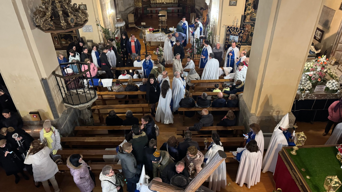 Procesión del Cristo de las Batallas. La humedad no ha impedido que numerosos miembros de la Hermandad del Cristo de las Batallas hayan salido de la iglesia de San Pedro, si bien se ha acortado el recorrido y desde el Mercado Grande se ha enfilado la calle de la Cruz Vieja para regresar por el arco de la catedral, acortando el itinerario por el Paseo del Rastro, la plaza del Teniente Arévalo y la plaza de Adolfo Suárez.