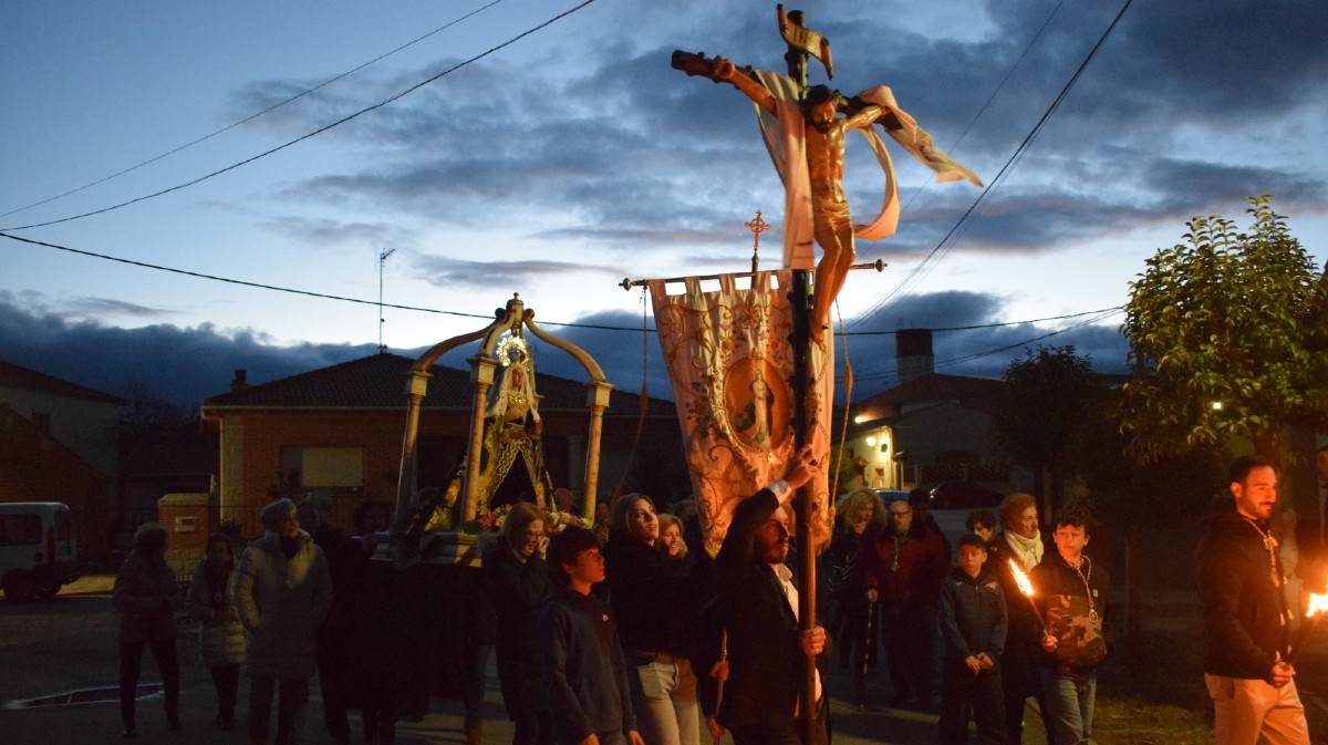 La jornada ha comenzado a primera hora de la mañana con el traslado de las imágenes titulares desde la ermita del Pradillo hasta la parroquia de la Sagrada Familia, en un recorrido que ha culminado a las 10,45 horas, cuando ante el templo han aparecido, frente a frente, las tallas del Santísimo Cristo del Resucitado y de Nuestra Señora del Buen Suceso.