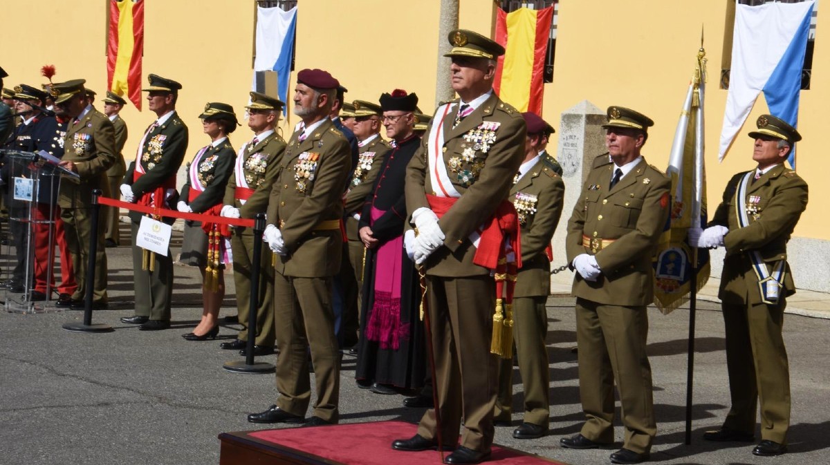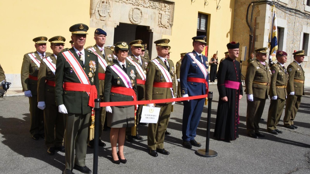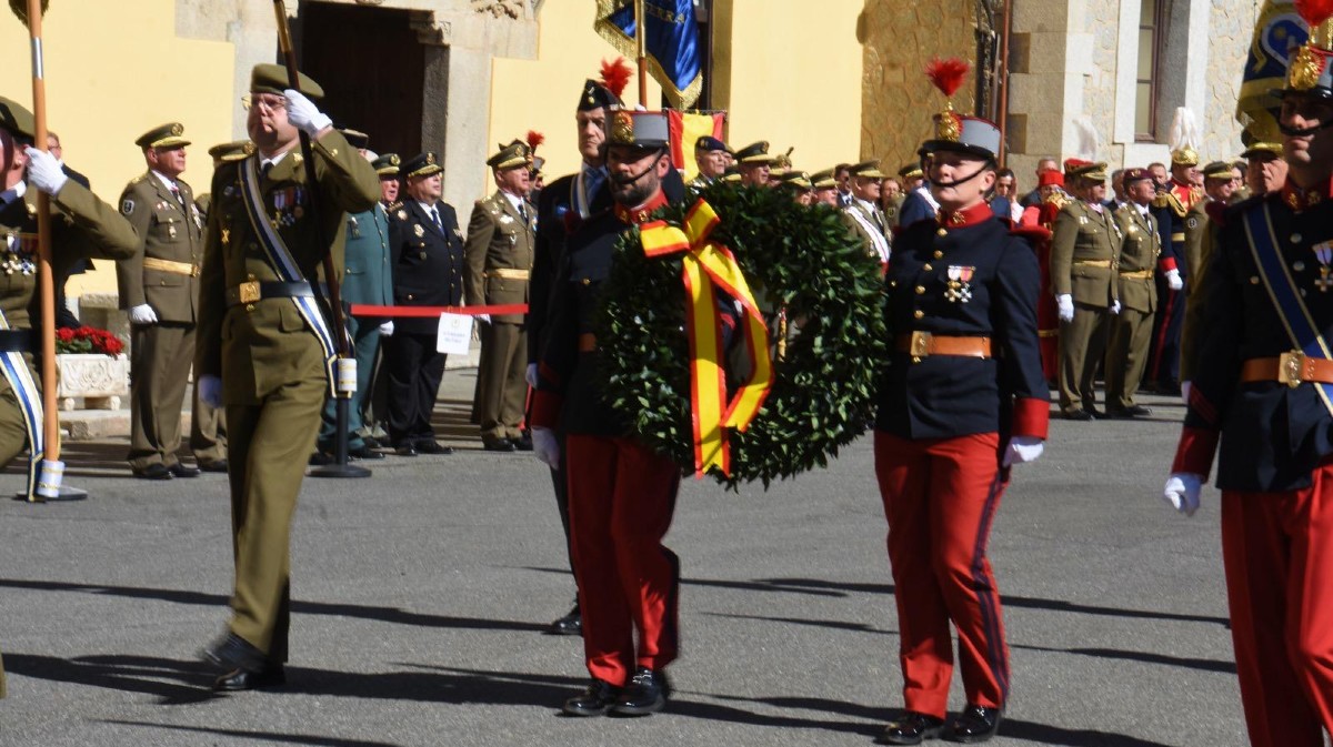 El acto, presidido por autoridades militares y civiles, ha reunido a representantes del Ejército de Tierra, mandos de distintas unidades y miembros de instituciones locales y regionales. La ceremonia incluyó la interpretación del himno nacional, un breve repaso histórico y la colocación de una corona de laurel en memoria de los oficiales formados en Ávila que sirvieron a España, así como un desfile simbólico en la entrada del palacio, en la calle Vallespín.