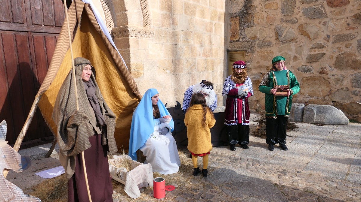 Belén viviente en el barrio de San Nicolás. Eso sí, con menos figuras que otros años. La presidenta de la Asociación de Vecinos, Natalia Vallejo, explica las dificultades que han marcado esta edición, porque en principio contaban con 30 personas, “pero la gripe causa estragos y hay unas cuantas bajas”. “No tenemos castañera y hemos tenido que sustituir a San José en el último momento” por culpa del virus gripal.