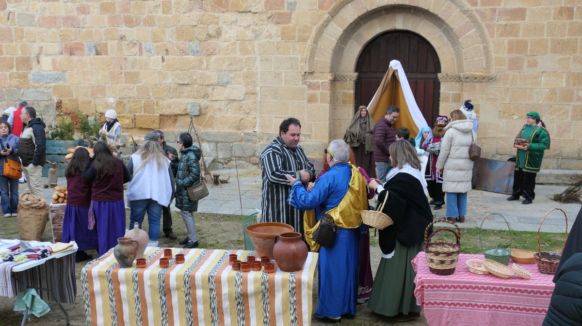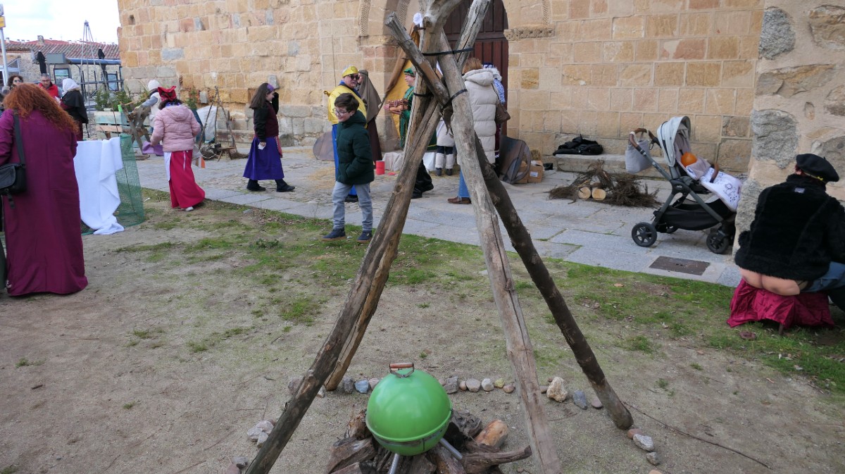 Lejos de suponer un obstáculo, la representación ha contado con 23 vecinos que ha asumido distintos papeles y tareas para que el belén mantenga su atractivo visual. Desde los más pequeños trabajando en el huerto hasta el panadero en su obrador y el carpintero trabajando la madera, pasando por los puestos de telas, de alfarería y de plata.