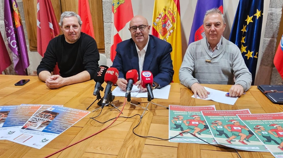 Presentación de la Papanoelada Motera y la San Silvestre de natación. Los datos han sido dados a conocer por el concejal de Turismo, Deportes y Fiestas del Ayuntamiento de Ávila, Carlos López, y Gustavo Herráez, coordinador de Curvávila, organizadores de la Papanoelada Motera, junto con Ricardo Gómez, presidente del Club de Natación Abulense, responsable de la San Silvestre.