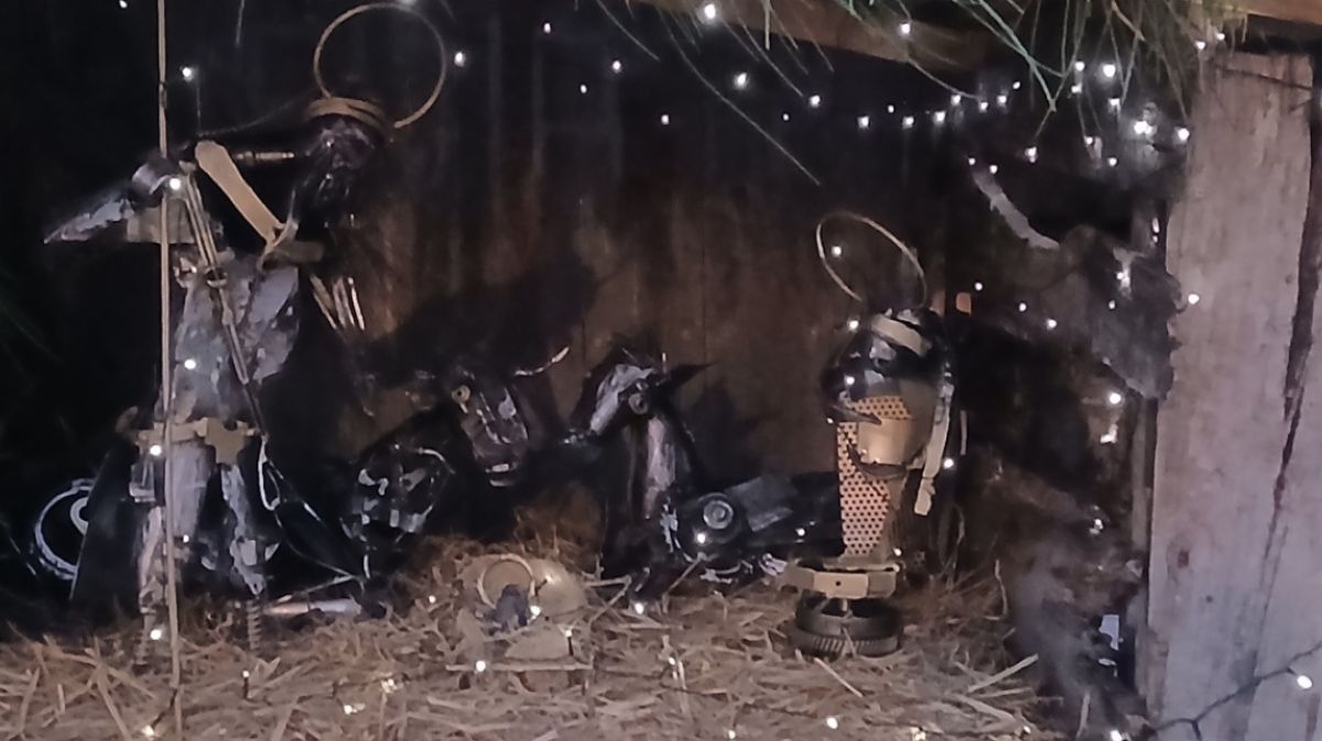 Belén en Navalmahillo Entre los elementos que componen esta obra destacan piezas de coche, chapas y motores de neveras, transformados en un impresionante conjunto artístico.