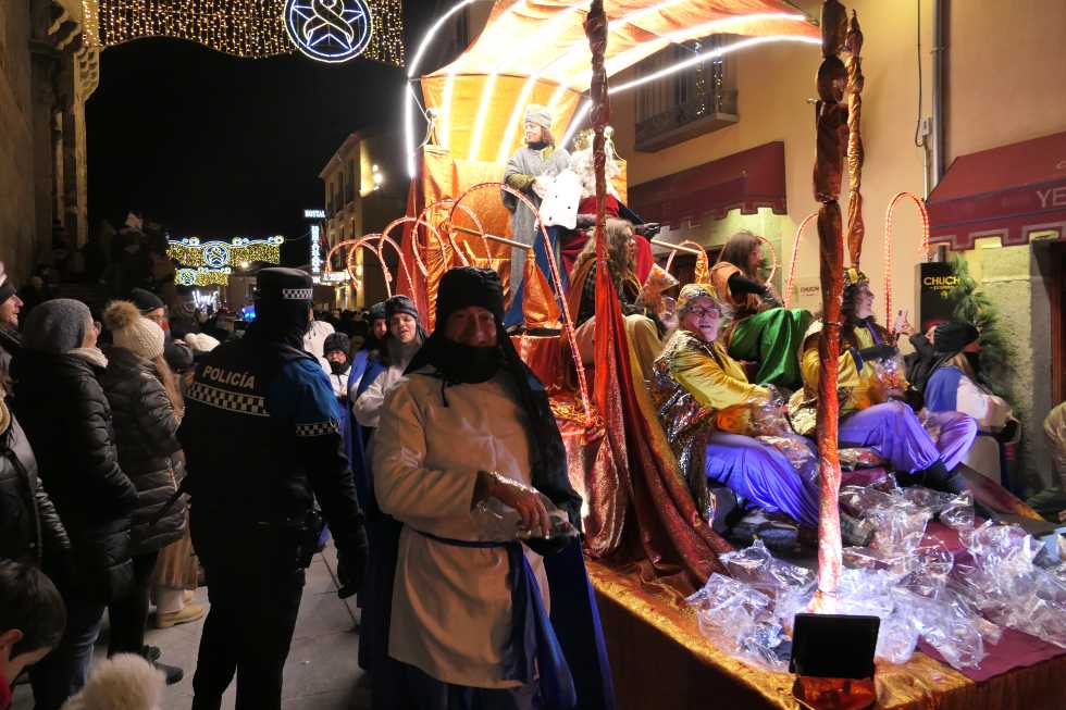La cabalgata ha contado con varios grupos de animación, entre ellos vistosos pendones voladores, además de la tradicional estrella de Belén y el portal, además de los camiones de regalos y carbón, vehículos de la Guardia Civil y las tres carrozas de los reyes, acompañados por sus respectivos séquitos. La comitiva ha contado con los sonidos de la banda de música La Inmaculada, de Nava del Rey (Valladolid); la Banda de Música de Ávila y la banda de cornetas y tambores El Amarrado.
