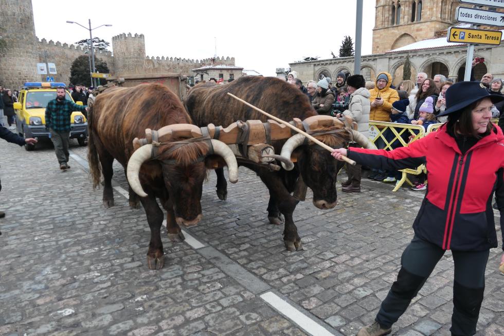 Tras el paso de los caballos, fue el turno para el Real Cabaña de Carreteros de Gredos, que ha participado con un carro tirado por bueyes. A continuación, ha llegado el momento más entrañable: la bendición de animales domésticos y mascotas que sus dueños llevaron para recibir la protección del santo patrono. Perros de todas las razas, gatos, conejos, tortugas, canarios y pequeños roedores han desfilado ante el sacerdote, en medio del sonido de las dulzainas del grupo Rebolada.