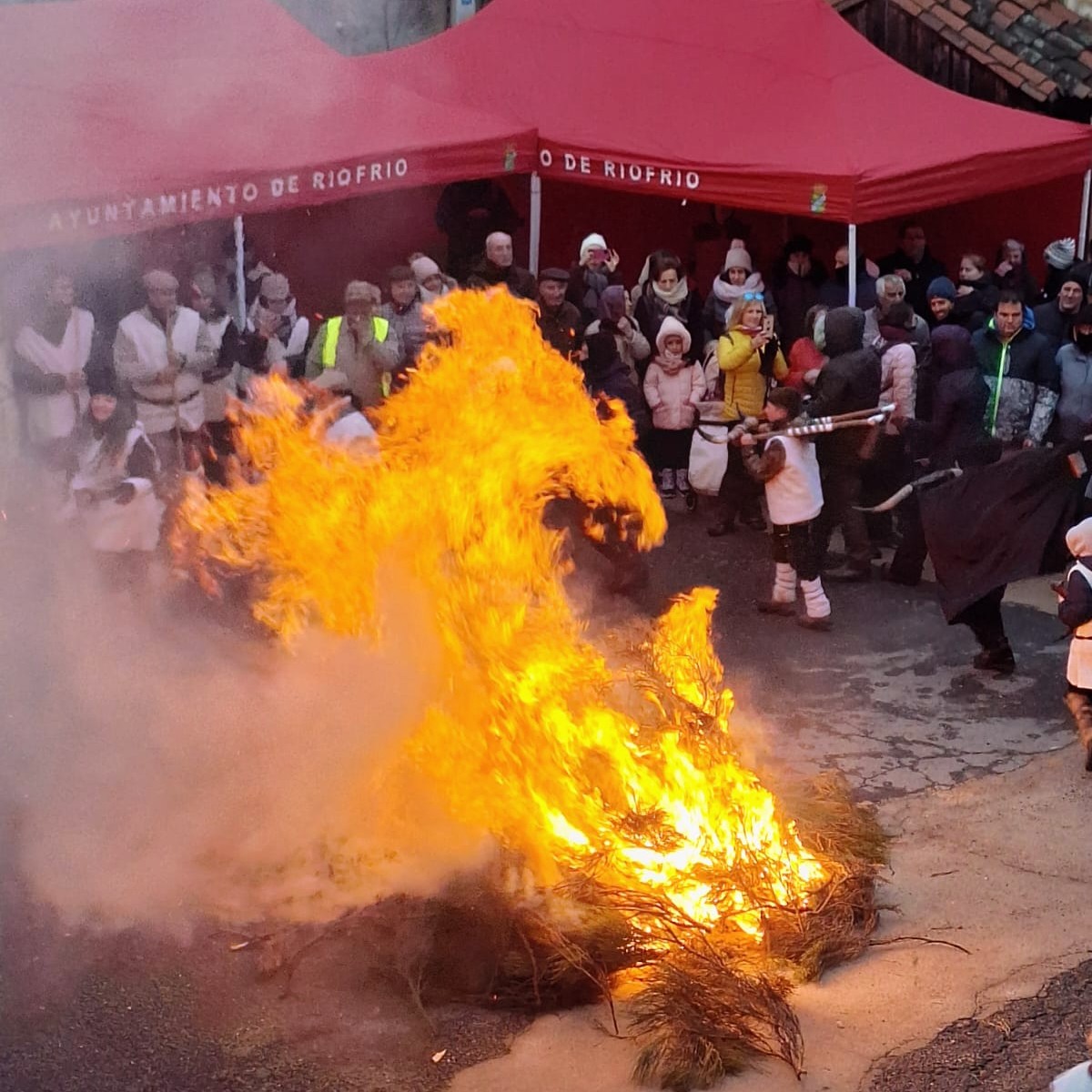 “El humo y las llamas acompañaron el girar de los participantes alrededor del fuego, animados por el sonido de la dulzaina, el tamboril y el bombo”, según ha explicado la alcaldesa de Riofrío, Raquel González. Una vez en la plaza, las asociaciones locales ofrecieron a los asistentes chocolate y pan frito con vino.