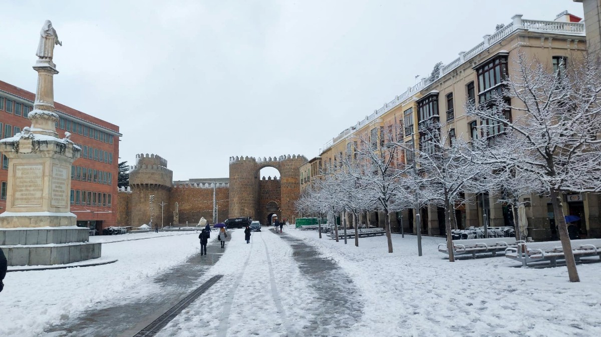 Ávila ha amanecido este miércoles 28 de enero cubierta de nieve, como consecuencia de la borrasca Ingrid, un episodio meteorológico que ha obligado a activar los operativos invernales.