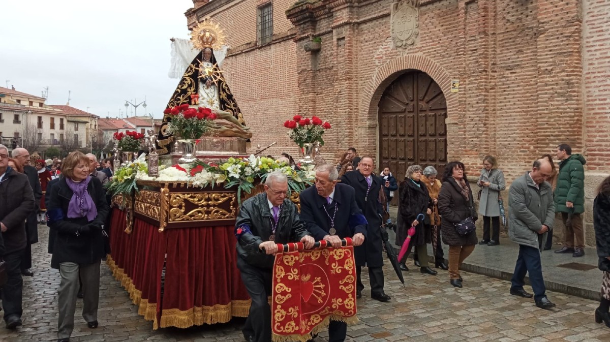 En un templo lleno a rebosar, la eucaristía ha sido presidida por el obispo de Ávila, Jesús Rico, y donde ha cantado la Coral La Moraña. Al término de la misa ha sido necesario decidir si la imagen podía salir en procesión debido a la lluvia caída, que finalmente ha terminado, por lo que la comitiva ha salido a las calles.