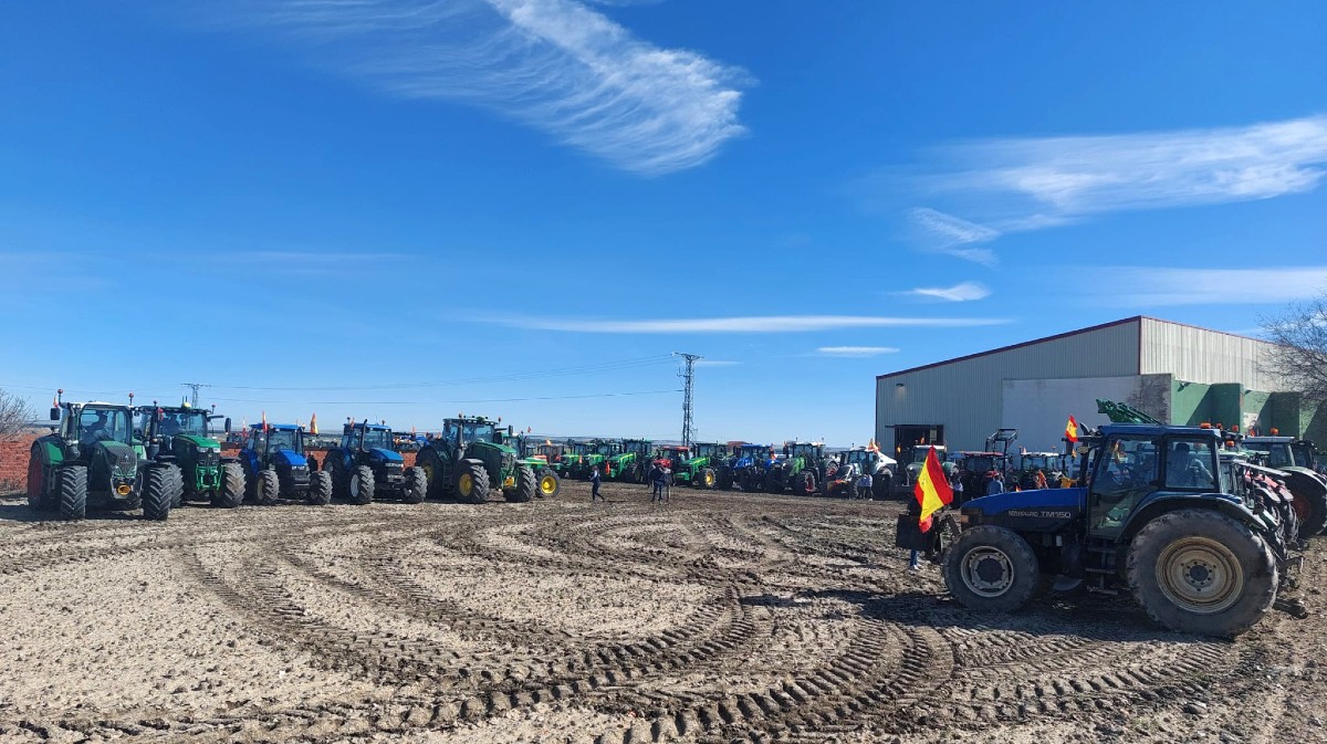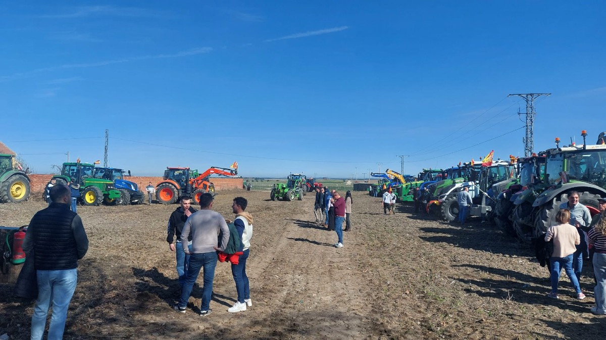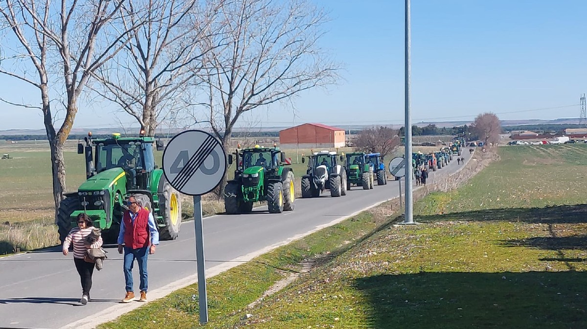 Quienes han acudido a Palacios de Goda han sido recibidos por dos pancartas: una en la que podía leerse "Bienvenidos a Palagüinos", mientras que la segunda reivindicaba "Precios justos" para un sector que vive momentos complicados con el acuerdo de Mercosur y la reforma de la Política Agrícola Común (PAC), entre otros.