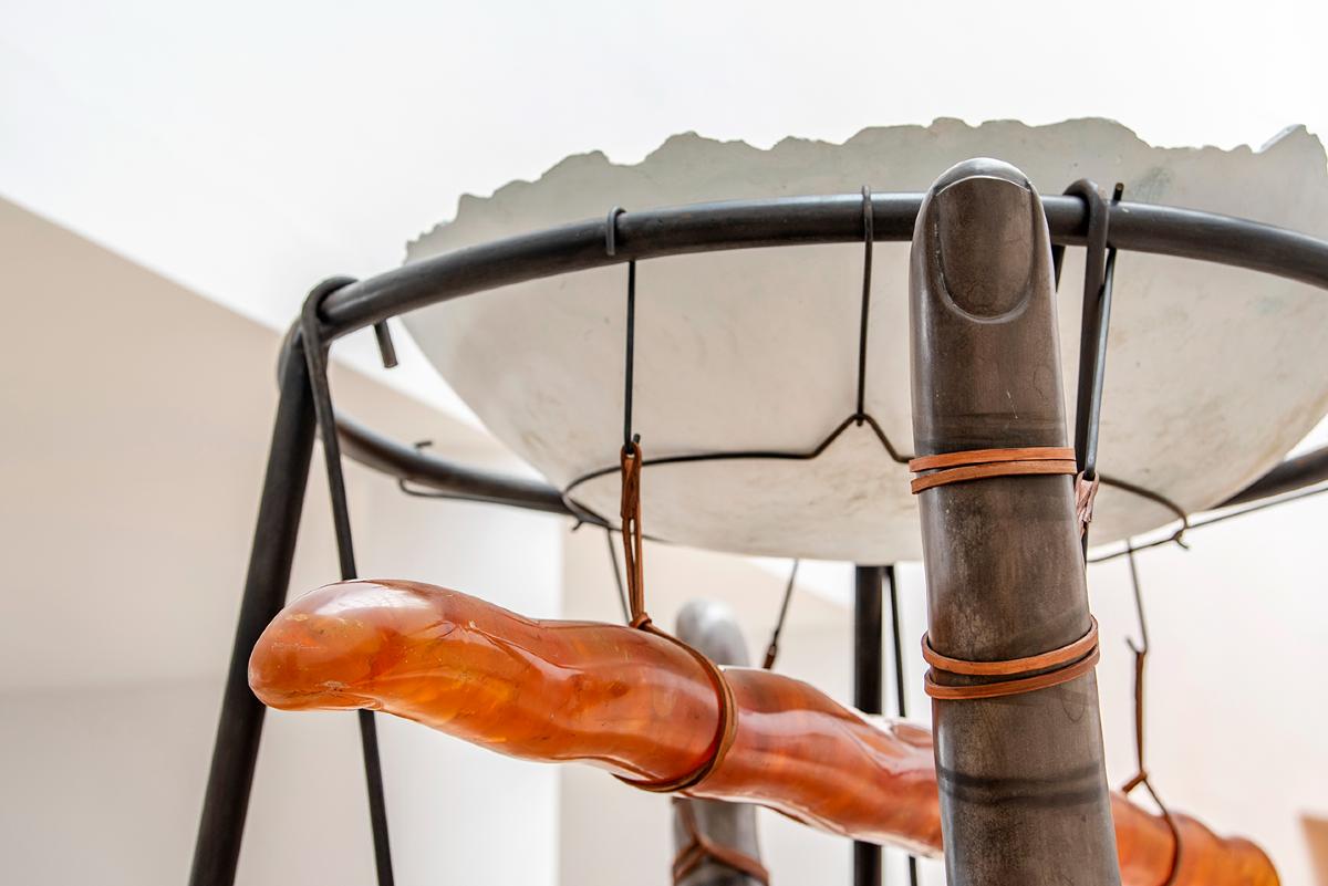 Por otra parte, ‘Yo, vos y la luna’, de Tunga, en la iglesia de San Miguel, se muestra por primera vez en España. Cedida por la coleccionista Sarina Tang, la obra combina piedras, espejos, botellas de cristal, yeso y resina en torno a un tronco fosilizado de cinco millones de años, que remite a un tiempo anterior a la humanidad y conecta distintas temporalidades en el contexto del espacio sacro.