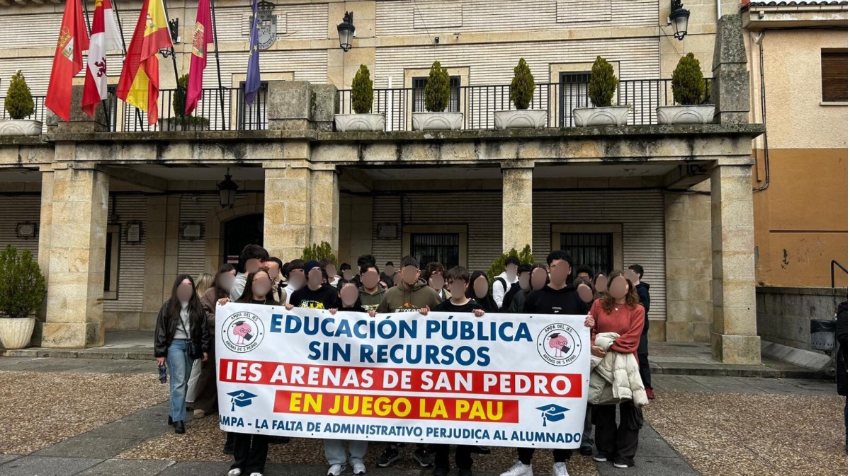 Alumnos del IES Arenas de San Pedro protestando por la falta de personal administrativo Tras el registro de varios escritos formales reclamando una solución urgente y ante la falta de respuesta y la prolongación del problema, los estudiantes de segundo de Bachillerato han organizado una movilización este jueves para pedir que se solucione este problema.
