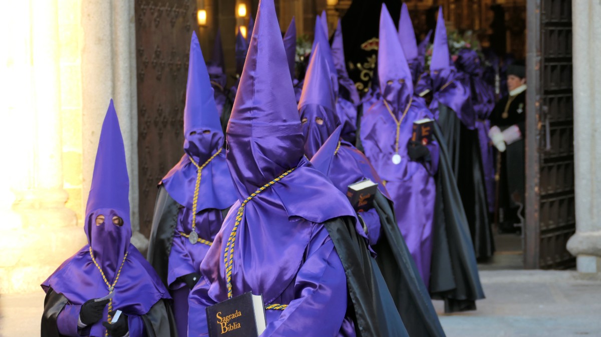 El elemento característico de esta hermandad en su estación de penitencia, además del color morado de su vestimenta, es que portan una biblia como símbolo de su origen académico. Este año la procesión ha coincidido, como ya sucedió en 2015, con la fecha de nacimiento de Santa Teresa de Jesús, patrona de la UCAV y que da nombre a la universidad. VER PROGRAMA DE LA SEMANA SANTA DE ÁVILA.
