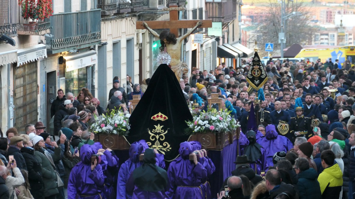 El frío no ha sido obstáculo para que cientos de personas hayan presenciado el recorrido, que el año pasado fue incompleto a causa de la lluvia. Organizada por la Hermandad Universitaria del Santísimo Cristo de los Estudiantes y María Santísima Sede de la Sabiduría, ha partido, a las 19 horas y de día, de la iglesia parroquial de San Pedro Apóstol, punto de inicio y final de un recorrido que ha tenido en el Mercado Chico el momento central con la consagración del Cristo de los Estudiantes.