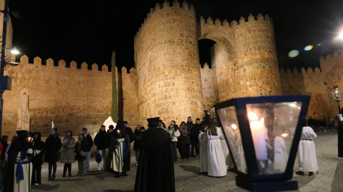 La procesión del Miserere ha vuelto a recorrer en la medianoche del Miércoles Santo las calles del centro de Ávila para escuchar en la madrugada las voces del miserere.