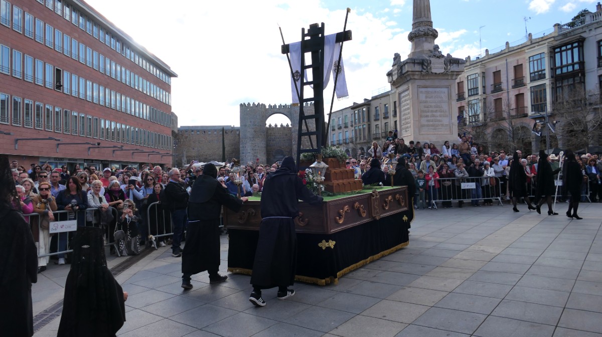 De esta manera, los más pequeños no sólo han llevado el nuevo paso, sino que han participado en los ensayos durante semanas con castañuelas y carracas para culminar en la tarde del Sábado Santo, cuando la procesión ha salido a las 19 horas de la iglesia de San Pedro, en un recorrido con devoción por las calles del centro, más corto que otros años. La comitiva ha atravesado la calle Comandante Albarrán, para llegar por Don Ferreol Hernández a las plazas de Italia y Nalvillos, y luego dirigirse por Eduardo Marquina a la avenida de Portugal, para enfilar la calle San Segundo antes de regresar de nuevo a San Pedro.