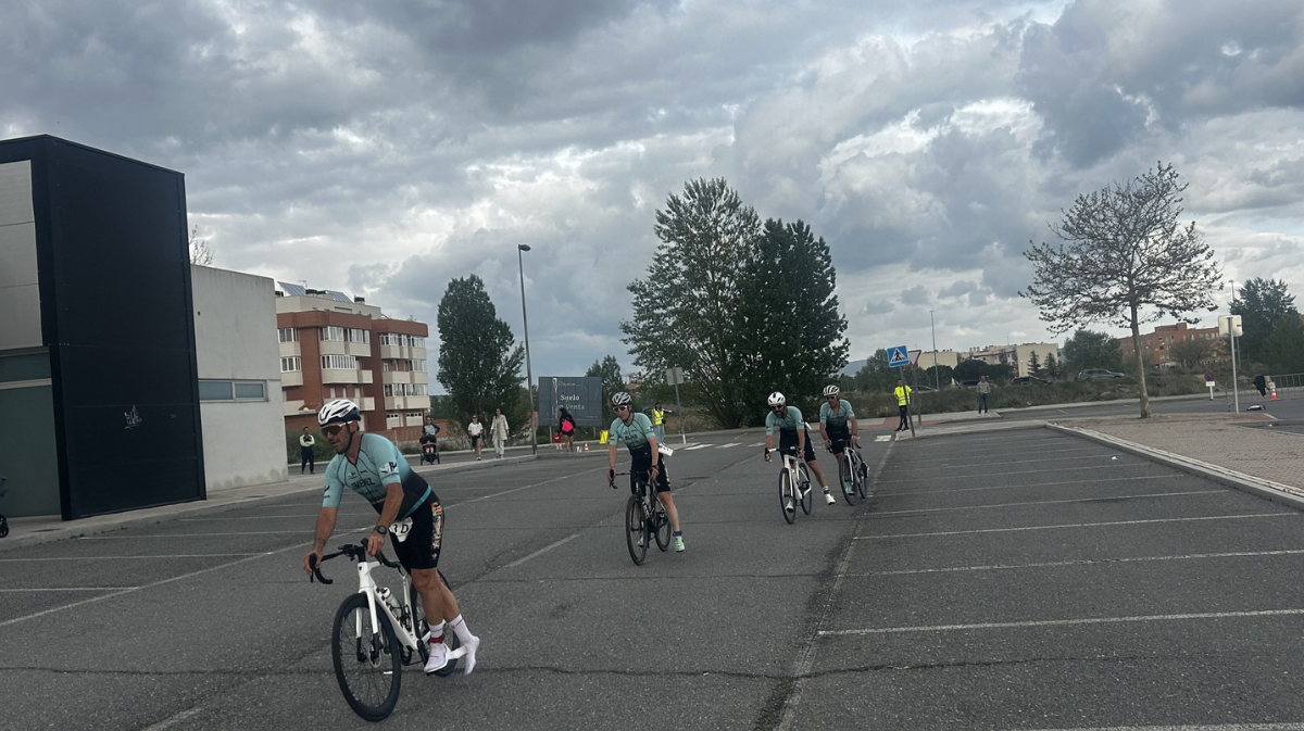 Podio de la categoría masculina, con los integrantes de la Escuela de Triatlón Salmantina. El entorno del Centro de Usos Múltiples Carlos Sastre reunió a cerca de dos centenares de deportistas de 17 clubes en el Duatlón Recambios Juanma. La prueba, disputada en formato de contrarreloj, contó con 34 escuadras que confirmaron el tirón de esta disciplina en la ciudad.