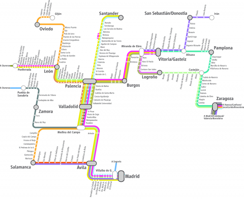 También paran trenes Intercity con destino Irún o Vigo y otros con destino a Valladolid-Campo Grande o Madrid - Atocha Cercanías o Salamanca y Vitoria.