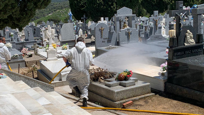 Efectivos de la Junta han realizado labores de desinfección en el cementerio de Cebreros, que permanece cerrado [...] Leer más...